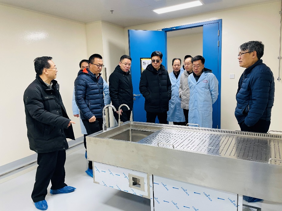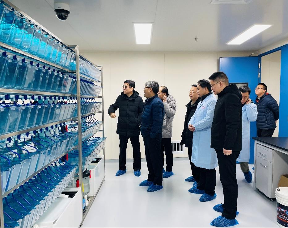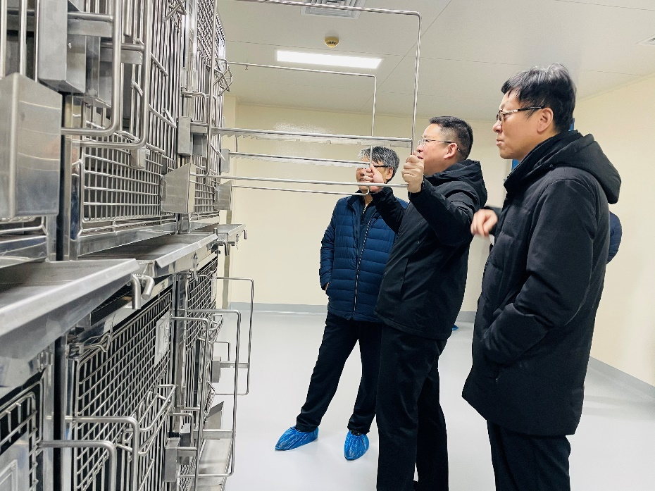 實(shí)驗(yàn)動(dòng)物中心副主任趙四海教授帶領(lǐng)專(zhuān)家對(duì)創(chuàng)新港實(shí)驗(yàn)動(dòng)物平臺(tái)大動(dòng)物飼養(yǎng)區(qū)家兔、豚鼠、犬、豬、非人靈長(zhǎng)類(lèi)、斑馬魚(yú)等進(jìn)行了現(xiàn)場(chǎng)考察,并對(duì)設(shè)施先期運(yùn)行進(jìn)行了現(xiàn)場(chǎng)匯報(bào)。