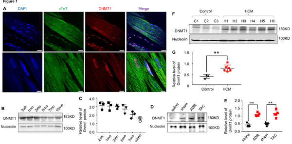 中國(guó)醫(yī)學(xué)科學(xué)院醫(yī)學(xué)實(shí)驗(yàn)動(dòng)物研究所張連峰教授課題組前期發(fā)現(xiàn)隨年齡增加野生型大鼠心肌組織中Dnmt1表達(dá)迅速下調(diào),而在多種心肌病動(dòng)物模型心肌組織中,其表達(dá)異常增高,提示該基因可能參與心肌病病理進(jìn)程的調(diào)控。