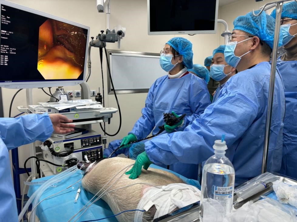 21日下午,在一附院麻醉科李欣副教授及實驗動物中心劉恩岐教授團隊的密切協(xié)助下,由盧桂芳副教授、任牡丹副教授為參加本次培訓的學員開展臨床動物實驗手把手帶教活動。學員通過本次培訓活動,初步學習體會了內(nèi)鏡下微創(chuàng)技術(shù)EMR和ESD操作的基本理論、基本技能,為進一步開展臨床工作奠定了一定的基礎。本次培訓活動獲得學員一致好評。