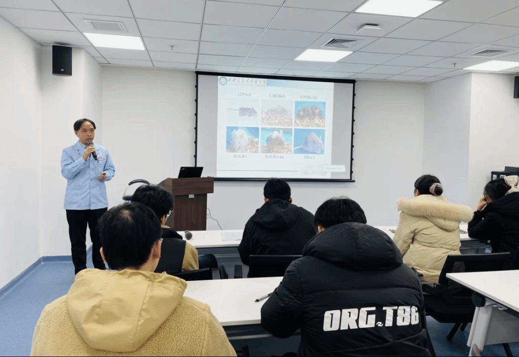 首先,實(shí)驗(yàn)動(dòng)物中心趙四海教授從實(shí)驗(yàn)動(dòng)物微生物分級(jí)、實(shí)驗(yàn)動(dòng)物與科學(xué)研究、實(shí)驗(yàn)動(dòng)物倫理福利等方面進(jìn)行了理論培訓(xùn)。