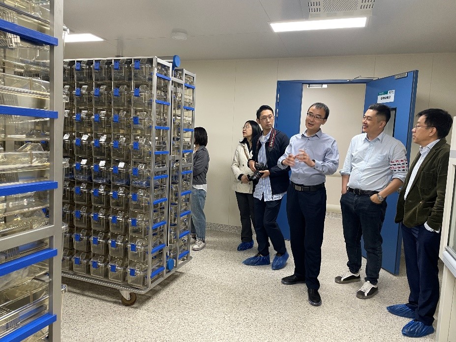 座談會后,羅海玻副院長一行現(xiàn)場參觀了創(chuàng)新港實驗動物中心實驗動物大鼠/小鼠飼養(yǎng)區(qū)、大動物飼養(yǎng)區(qū)、動物手術(shù)室、生物凈化室、ABSL-2實驗室等。
